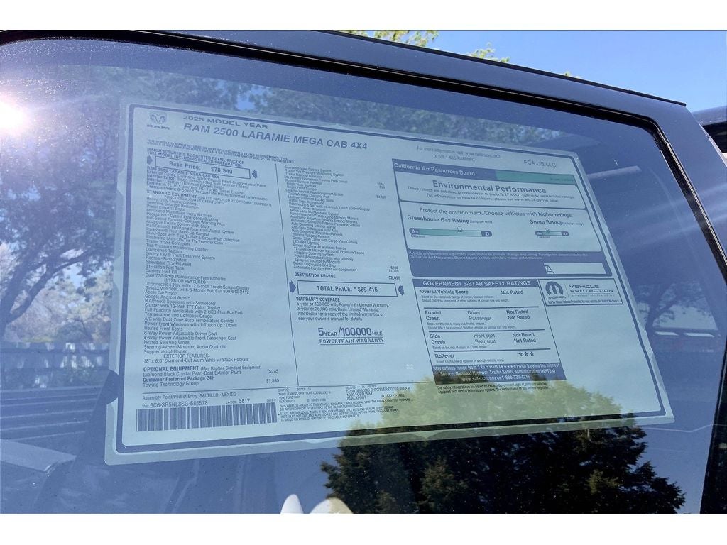 Laramie Level 2 Plus Equipment Group: Google Android Auto; SiriusXM Radio Service; Power Adjustable Pedals with Memory; Integrated Voice Command with Bluetooth®; Emergency Vehicle Alert System (EVAS); Power Deployable Running Boards; Auto Power-Folding Mirrors; Anti-Spin Differential Rear Axle; Mirror Running Lights; Drowsy Driver Detection; MOPAR Deployable Bed Step; Alexa Built-In; Apple CarPlay; Power Adjustable Convex Aux Mirrors; Active Lane Management System; Forward and Reverse Utility Lights; Disassociated Touchscreen Display; Remote Tailgate Release; 17 Speaker Harman/kardon Premium Sound; Center Stop Lamp with Cargo View Camera; Rain Sensitive Windshield Wipers; LED Bed Lighting; Traffic Sign Recognition; Connectivity - US/Canada; GPS Navigation; 4G LTE Wi-Fi Hot Spot; Adaptive Steering System; GPS Antenna Input; Exterior Mirrors with Heating Element; Auto Dim Exterior Mirror; SiriusXM with 360L; Global Telematics Box Module; Connected Travel and Traffic Services; Foam Bottle Insert (door Trim Panel); Off-Road Information Pages; Selectable Tire Fill Alert; Trailer Tow Pages; Leather Trimmed Bucket Seats; HD Radio; 14.4" Touchscreen Display; Power Heated Fold Telescope Mirrors W/memory; Exterior Mirrors with Supplemental Signals; Exterior Mirrors Courtesy Lamps; Uconnect 5 Nav with 14.4" Display; MOPAR Spray in Bedliner; Auto High Beam Headlamp Control; Chrome Exterior Mirrors; Exterior Mirrors with Memory; Power Adjust Mirrors; Power Telescoping Mirrors; Auto Dim Exterior Passenger Mirror; Auto Adjust in Reverse Exterior Mirrors. Quick Order Package 24H Laramie. Towing Technology Group: Center Stop Lamp with Cargo View Camera; Surround View Camera System; Trailer Tire Pressure Monitoring System; Trailer Reverse Guidance. Chrome Bumper Package: Bright Rear Bumper; Bright Front Bumper. Auto Level Rear Air Suspension. Power Deployable Running Boards. Leather Trimmed Bucket Seats. 5th Wheel/gooseneck Towing Prep Group. Center Stop Lamp with Cargo View Camera. Diamond Black Crystal PC. **Equipment listed is based on original vehicle build and subject to change. Please confirm the accuracy of the included equipment by calling the dealer prior to purchase.**