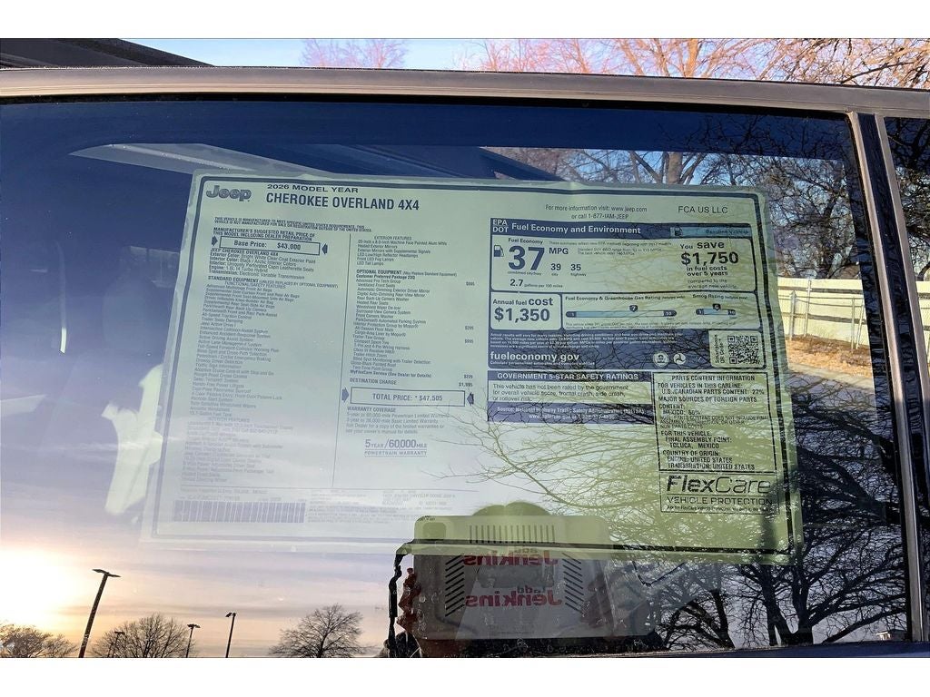 This model features a hands-free Bluetooth® phone system. You'll never again be lost in a crowded city or a country region with the navigation system on this model. This 2026 Jeep Cherokee is pure luxury with a heated steering wheel. See what's behind you with the back up camera on this mid-size suv. This unit offers Apple CarPlay for seamless connectivity. This Jeep Cherokee has automated speed control that adjusts to maintain a safe following distance, enhancing highway driving convenience. This 2026 Jeep Cherokee offers Android Auto for seamless smartphone integration. The leather seats in this mid-size suv are a must for buyers looking for comfort, durability, and style. An off-road package is equipped on this unit. Never get into a cold vehicle again with the remote start feature on this 2026 Jeep Cherokee . This unit's Forward Collision Warning system alerts the driver to potential front-end collisions, enhancing safety.