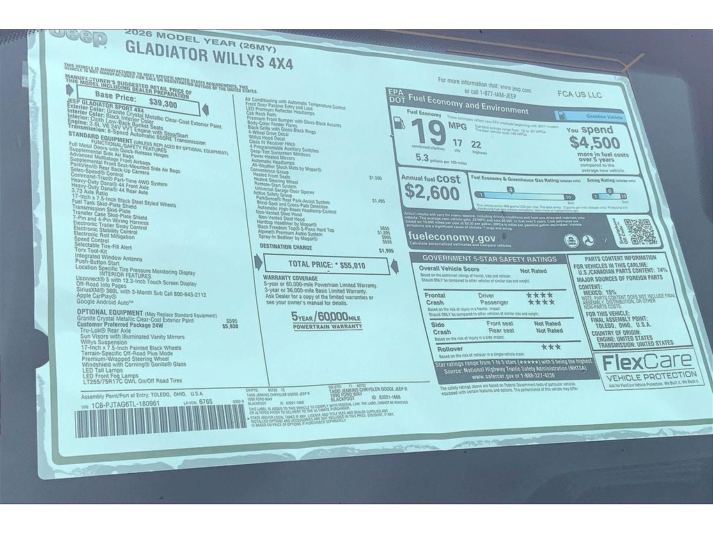 - Vehicle Name: Jeep Gladiator