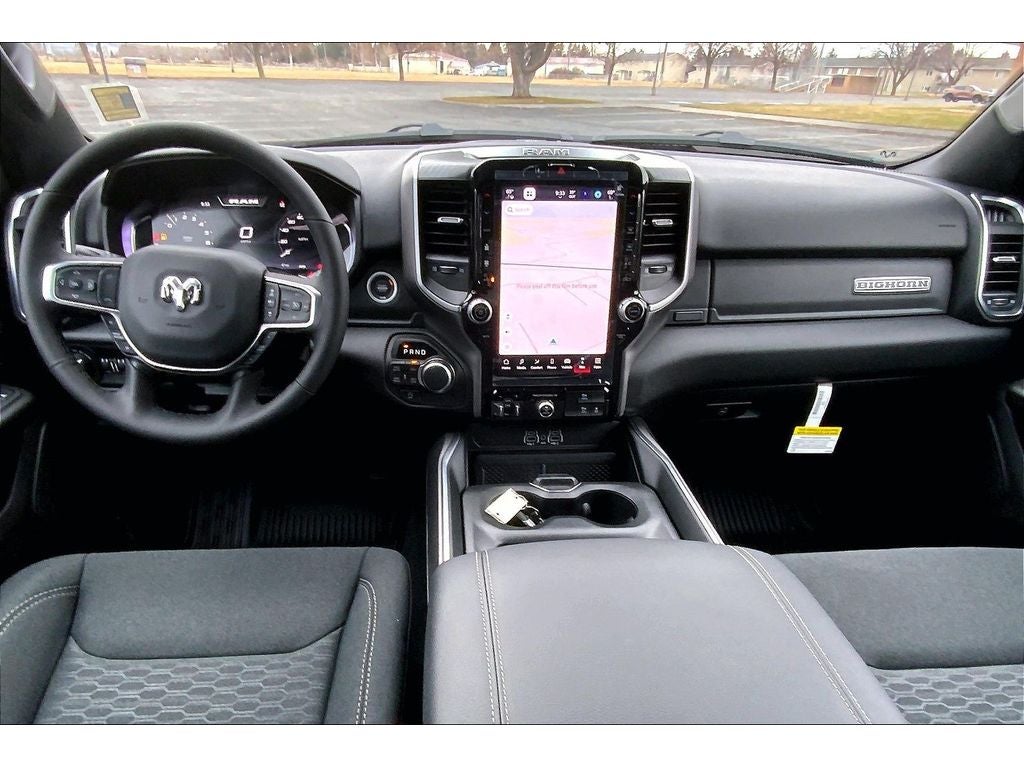 Quick Order Package 27Z Big Horn. Big Horn Level 2 Equipment Group: Google Android Auto; SiriusXM Radio Service; USB Host Flip; Power Adjustable Pedals; Leather Wrapped Steering Wheel; Integrated Voice Command with Bluetooth®; 12" Touchscreen Display; Glove Box Lamp; Auto Power-Folding Mirrors; 115V Auxiliary Rear Power Outlet; Media Hub with 2 Charge Only USBs; Heated Front Seats; Security Alarm; Black Premium Power Mirrors; Apple CarPlay; Premium Overhead Console; 9 Amplified Speakers with Subwoofer; Disassociated Touchscreen Display; Body Color Fender Flares; Remote Tailgate Release; 115V Auxiliary Power Outlet; LED Dome Lamp with On/off Switch; Universal Garage Door Opener; 2nd Row in Floor Storage Bins; Sun Visors with Illuminated Vanity Mirrors; LED Footwell Lighting; Rear Window Defroster; Integrated Center Stack Radio; Rear View Auto Dim Mirror; Rear Power Sliding Window; Connectivity - US/Canada; GPS Navigation; 4G LTE Wi-Fi Hot Spot; GPS Antenna Input; Overhead LED Lamps; Exterior Mirrors with Heating Element; Auto Dim Exterior Driver Mirror; SiriusXM with 360L; Global Telematics Box Module; Connected Travel and Traffic Services; Heated Steering Wheel; Black Exterior Mirrors; Configurable Drive Mode; 400W Inverter; HD Radio; Deluxe Cloth Bucket Seats; Uconnect 5 Navigation with 12.0" Display Radio; Exterior Mirrors with Supplemental Signals; Steering Wheel Mounted Audio Controls; Exterior Mirrors Courtesy Lamps; Air Conditioning ATC with Dual Zone Control; Cluster 7.0" TFT Color Display; Convex Wide-Angle Exterior Mirror Insert. Night Edition: 275/55R20 OWL All Season Tires; Accent Color Premium Power Mirrors; Exterior Mirrors with Supplemental Signals; Black Headlamp Bezels; Exterior Mirrors Courtesy Lamps; Grille Black Surround Black Mesh; Auto Power-Folding Mirrors; Exterior Mirrors with Heating Element; 20" X 9.0" Aluminum Painted Clad Wheels; Auto Dim Exterior Driver Mirror; Black Exterior Truck Badging; Anti-Spin Differential Rear Axle; Accent Color Door Handles; Accent Color Tailgate Handle; Black Interior Accents; Dual Exhaust with Black Tips; Body Color Front Bumper; Convex Wide-Angle Exterior Mirror Insert; Body Color Rear Bumper with Step Pads; Black Tail Lamp Bezels; RAM Grille Badge - Black; Black Painted Exterior Mirrors Caps. Towing Technology Group: Trailer Hitch Line-Up Assist. Bed Utility Group: MOPAR Spray in Bedliner; Truck Bed Cargo Divider; MOPAR 4 Adjustable Cargo Tie-Down Hooks; Pick-Up Box Lighting; Exterior 115V AC Outlet; MOPAR Deployable Bed Step Center Mount. Trailer Tow Group II: Trailer Light Check; Trailer Brake Control; Accent Color Tailgate Handle; Trailer Reverse Steering Control; Trailer Tire Pressure Monitoring System. Quick Order Package 23Z Big Horn. Multi-Function Tailgate. RamBox Cargo Management System. 9 Amplified Speakers with Subwoofer. Anti-Spin Differential Rear Axle. Surround View Camera System. 33 Gallon Fuel Tank. Trailer Brake Control. Diamond Black Crystal PC. Rear Underseat Compartment Storage. Cluster 12" TFT Color Display. Black Trailer Tow Power Mirrors. MOPAR Front and Rear Rubber Floor Mats. 3.92 Rear Axle Ratio. Rear Wheelhouse Liners. **Equipment listed is based on original vehicle build and subject to change. Please confirm the accuracy of the included equipment by calling the dealer prior to purchase.**