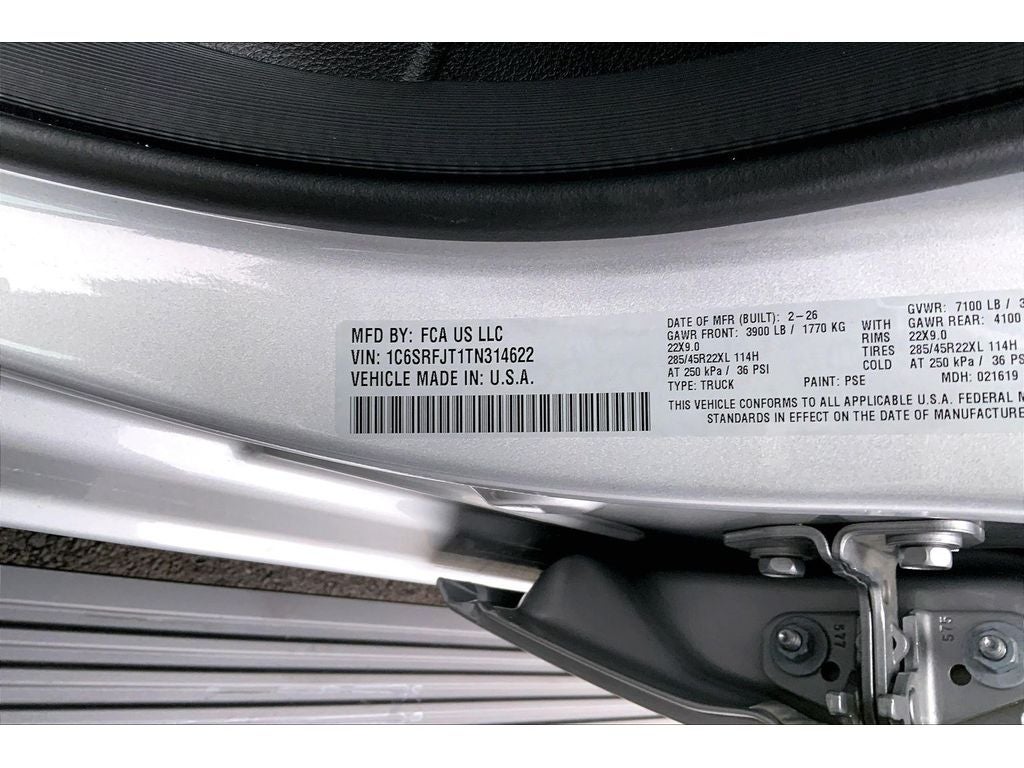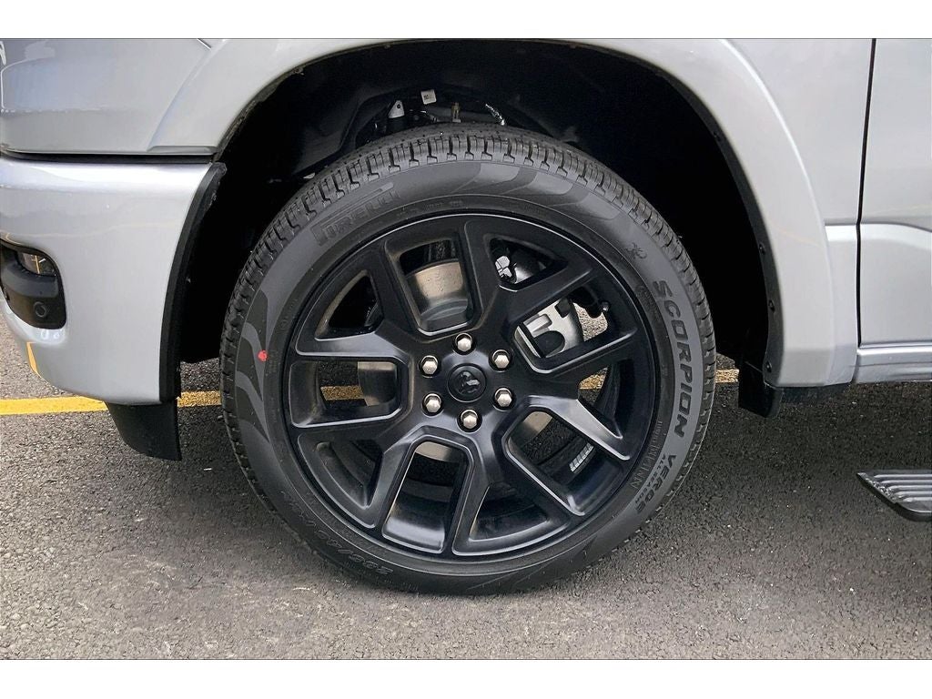 Advanced Safety Group II: Exterior Mirrors Approach Lamps; Active Driving Assist System; Surround View Camera System; Evasive Steer Assist; Drowsy Driver Detection; Intersection Collision Assist System; Traffic Sign Recognition; 12-Way/1-way Trailer Connector. Quick Order Package 27H Laramie. Laramie Level 2 Equipment Group: SiriusXM Radio Service; USB Host Flip; Rain Sensitive Windshield Wipers; 14.4" Touchscreen Display; Integrated Center Stack Radio; Front Passenger Interactive Display; Integrated Voice Command with Bluetooth®; Connectivity - US/Canada; Uconnect 5 Nav with 14.4" Display; GPS Navigation; 4G LTE Wi-Fi Hot Spot; Harman/kardon 19 Speaker Premium Sound; SiriusXM with 360L; Connected Travel and Traffic Services; Cluster 12" TFT Color Display; Power Tailgate. Night Edition: Black Headlamp Bezels; Auto Power-Folding Mirrors; 22" X 9" Forged Aluminum Wheels; Exterior Mirrors with Heating Element; Proximity Approach/departure Lamps; Auto Dim Exterior Driver Mirror; Anti-Spin Differential Rear Axle; Accent Color Door Handles; Black Interior Accents; Body Color Front Bumper; Grille Surround 3 Black Texture 2 Black; Body Color Rear Bumper with Step Pads; RAM Grille Badge - Black; Black Painted Exterior Mirrors Caps; Exterior Mirrors Approach Lamps; Accent Color Premium Power Mirrors; Exterior Mirrors with Supplemental Signals; Sport Performance Hood; Exterior Mirrors Courtesy Lamps; Black Exterior Truck Badging; Accent Color Tailgate Handle; Exterior Mirrors with Memory; Dual Exhaust with Black Tips; Convex Wide-Angle Exterior Mirror Insert; Black Tail Lamp Bezels. Technology Group: Head Up Display; LED CHMSL Lamp; Digital Rearview Mirror; 12-Way/1-way Trailer Connector. Bed Utility Group: MOPAR Spray in Bedliner; Truck Bed Cargo Divider; MOPAR 4 Adjustable Cargo Tie-Down Hooks; Exterior 115V AC Outlet; MOPAR Deployable Bed Step Center Mount. Protection Group: Steering Gear Skid Plate; Tow Hooks; Transfer Case Skid Plate; Fuel Tank Skid Plate. Hands-Free Active Driving Assist System. 22" X 9" Forged Aluminum Wheels. 4-Corner Air Suspension. Dual-Pane Panoramic Sunroof. Power Deployable Running Boards. Multi-Function Tailgate. RamBox Cargo Management System. Anti-Spin Differential Rear Axle. 33 Gallon Fuel Tank. Trailer Brake Control. Silver Zynith. MOPAR Front and Rear Rubber Floor Mats. 3.92 Rear Axle Ratio. Rear Wheelhouse Liners. **Equipment listed is based on original vehicle build and subject to change. Please confirm the accuracy of the included equipment by calling the dealer prior to purchase.**