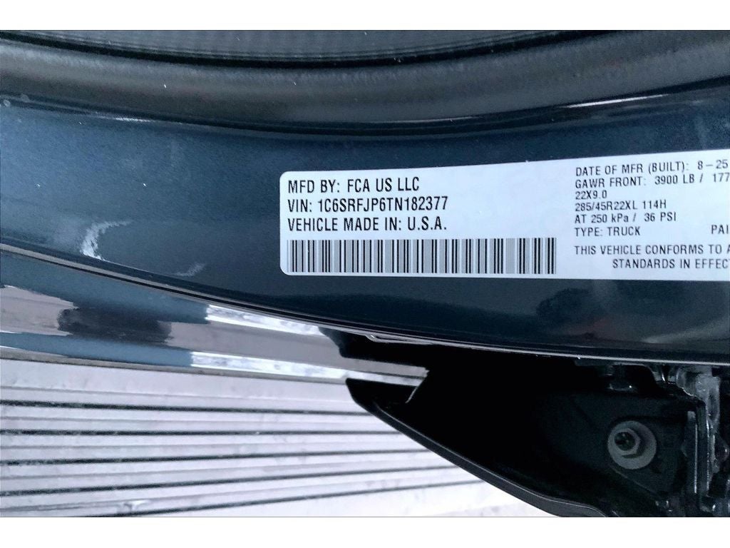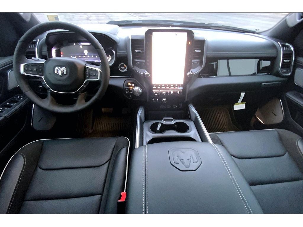 Advanced Safety Group II: Exterior Mirrors Approach Lamps; Active Driving Assist System; Surround View Camera System; Evasive Steer Assist; Drowsy Driver Detection; Intersection Collision Assist System; Traffic Sign Recognition; 12-Way/1-way Trailer Connector. Quick Order Package 21H Laramie. Laramie Level 2 Equipment Group: SiriusXM Radio Service; USB Host Flip; Rain Sensitive Windshield Wipers; 14.4" Touchscreen Display; Integrated Center Stack Radio; Front Passenger Interactive Display; Integrated Voice Command with Bluetooth®; Connectivity - US/Canada; Uconnect 5 Nav with 14.4" Display; GPS Navigation; 4G LTE Wi-Fi Hot Spot; Harman/kardon 19 Speaker Premium Sound; SiriusXM with 360L; Connected Travel and Traffic Services; Cluster 12" TFT Color Display; Power Tailgate. Night Edition: Black Headlamp Bezels; Auto Power-Folding Mirrors; 22" X 9" Forged Aluminum Wheels; Exterior Mirrors with Heating Element; Proximity Approach/departure Lamps; Auto Dim Exterior Driver Mirror; Anti-Spin Differential Rear Axle; Accent Color Door Handles; Black Interior Accents; Body Color Front Bumper; Grille Surround 3 Black Texture 2 Black; Body Color Rear Bumper with Step Pads; RAM Grille Badge - Black; Black Painted Exterior Mirrors Caps; Exterior Mirrors Approach Lamps; Accent Color Premium Power Mirrors; Exterior Mirrors with Supplemental Signals; Sport Performance Hood; Exterior Mirrors Courtesy Lamps; Black Exterior Truck Badging; Accent Color Tailgate Handle; Exterior Mirrors with Memory; Dual Exhaust with Black Tips; Convex Wide-Angle Exterior Mirror Insert; Black Tail Lamp Bezels. Technology Group: Head Up Display; LED CHMSL Lamp; Digital Rearview Mirror; 12-Way/1-way Trailer Connector. Trailer Tow Group: Trailer Brake Control; Trailer Reverse Steering Control; Black Power-Fold Trailer Tow Mirrors; Trailer Tire Pressure Monitoring System. 22" X 9" Forged Aluminum Wheels. Power Deployable Running Boards. Black Power-Fold Trailer Tow Mirrors. Anti-Spin Differential Rear Axle. 33 Gallon Fuel Tank. Trailer Brake Control. Forged Blue Metallic. MOPAR Front and Rear Rubber Floor Mats. **Equipment listed is based on original vehicle build and subject to change. Please confirm the accuracy of the included equipment by calling the dealer prior to purchase.**