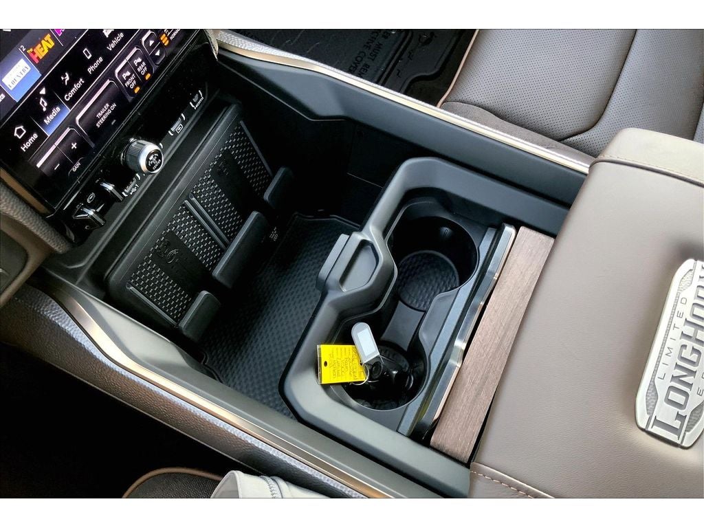 Limited Level A Equipment Group: Google Android Auto; SiriusXM Radio Service; USB Host Flip; Surround View Camera System; Integrated Center Stack Radio; LED CHMSL Lamp; Tri-Fold Tonneau Cover; Integrated Voice Command with Bluetooth®; Connectivity - US/Canada; Traffic Sign Recognition; Digital 3.0 Rear View Auto Dim Mirror; GPS Navigation; 4G LTE Wi-Fi Hot Spot; GPS Antenna Input; Hands-Free Active Driving Assist System; SiriusXM with 360L; Global Telematics Box Module; Head Up Display; Connected Travel and Traffic Services; Evasive Steer Assist; Drowsy Driver Detection; Intersection Collision Assist System; Apple CarPlay; Disassociated Touchscreen Display; HD Radio; Smartphone as a Key Capable; 14.4" Touchscreen Display; Uconnect 5 Nav with 14.4" Display; 240 Amp Alternator; 12-Way/1-way Trailer Connector. Quick Order Package 22K Longhorn: Premium Filigree Leather Seats; Warm Chrome Key Fob; Longhorn Instrument Cluster Theme 3; Premium Door Trim Panel; Grille Surround 4 Chrome Texture 5 Chrome; Longhorn Badge. Towing Technology Group: Trailer Hitch Line-Up Assist; Trailer Reverse Guidance. Trailer Tow Group: Trailer Light Check; Trailer Brake Control; Trailer Reverse Steering Control; Trailer Tire Pressure Monitoring System. 22" X 9" Premium Paint/polished Wheels. Dual-Pane Panoramic Sunroof. Multi-Function Tailgate. Chrome Power-Fold Trailer Tow Mirrors. Tri-Fold Tonneau Cover. E-Locker Rear Axle. Trailer Brake Control. Molten Red Pearlcoat. **Equipment listed is based on original vehicle build and subject to change. Please confirm the accuracy of the included equipment by calling the dealer prior to purchase.**
