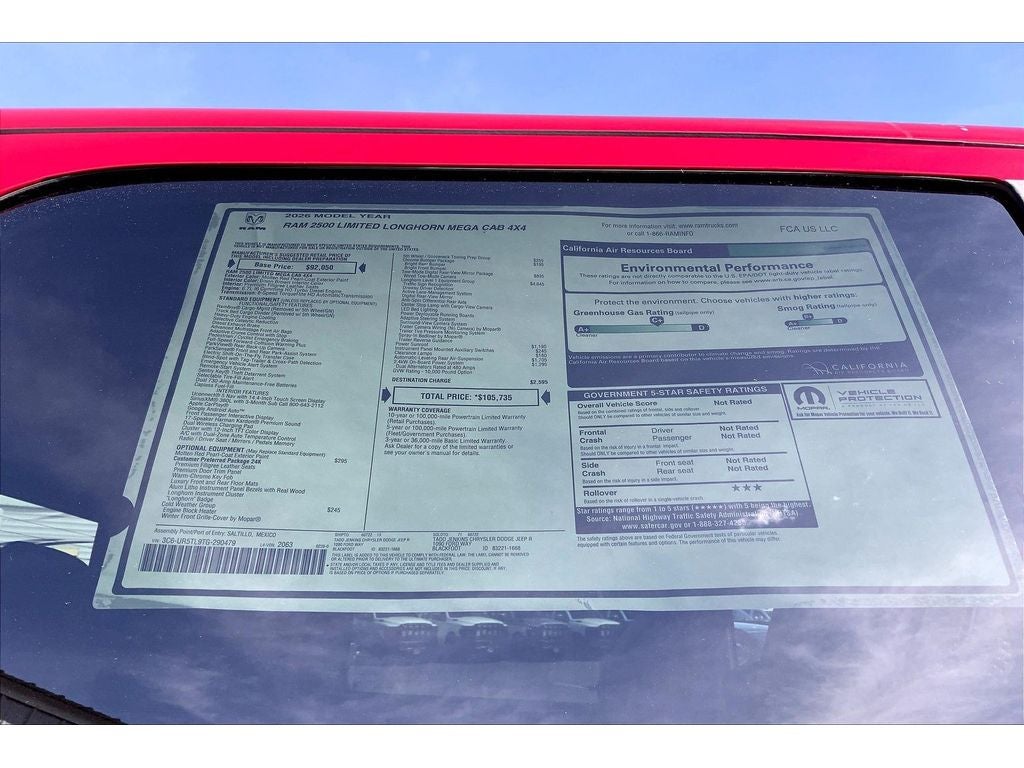 It comes equipped with Android Auto for seamless smartphone integration on the road. It has auto-adjust speed for safe following. Keep your hands warm all winter with a heated steering wheel in the Ram 2500 . Start this unit from inside with remote start. The leather seats are soft and supportive on this 3/4 ton pickup. The vehicle features a hands-free Bluetooth® phone system. Apple CarPlay: Seamless smartphone integration for it - stay connected and entertained on the go! Protect this Ram 2500 from unwanted accidents with a cutting edge backup camera system. You'll never again be lost in a crowded city or a country region with the navigation system on this unit. This 2026 Ram 2500 's Forward Collision Warning feature alerts drivers to potential front-end collisions. When you encounter slick or muddy roads, you can engage the four wheel drive on this vehicle and drive with confidence. This vehicle has a 6 Cyl, 6.7L high output engine.