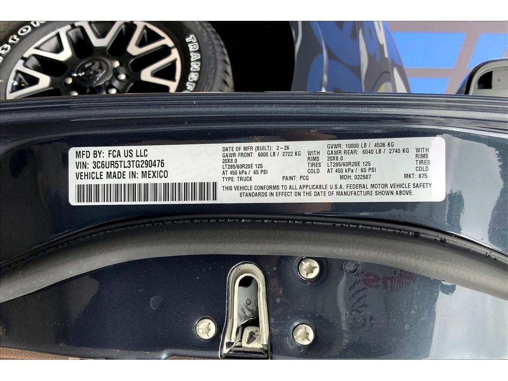 Cold Weather Group: Engine Block Heater; MOPAR Winter Front Grille Cover. Quick Order Package 24K Longhorn: Luxury Front and Rear Floor Mats; Warm Chrome Key Fob; Longhorn Instrument Cluster Theme 3; Premium Filigree Leather Seats; I/P Aluminum Litho Bezels with Real Wood #1; Longhorn Badge. Longhorn Level 1 Equipment Group: Active Lane Management System; Center Stop Lamp with Cargo View Camera; MOPAR Trailer Camera Wiring with No Camera; Surround View Camera System; LED Bed Lighting; Power Deployable Running Boards; Traffic Sign Recognition; Trailer Tire Pressure Monitoring System; Adaptive Steering System; MOPAR Spray in Bedliner; Anti-Spin Differential Rear Axle; Drowsy Driver Detection; Trailer Reverse Guidance; Digital Rearview Mirror. Chrome Bumper Package: Bright Rear Bumper; Bright Front Bumper. Tow-Mode Digital Rearview Mirror Package: Tow-Mode Camera (wired); Digital Rearview Mirror. on Board Power System - 2.4KW: Dual Alternators Rated At 480 Amps. Auto Level Rear Air Suspension. Power Sunroof. MOPAR Trailer Camera Wiring with No Camera. Forged Blue Metallic. 5th Wheel/gooseneck Towing Prep Group. Instrument Panel Mounted Auxiliary Switches. Clearance Lamps. **Equipment listed is based on original vehicle build and subject to change. Please confirm the accuracy of the included equipment by calling the dealer prior to purchase.**