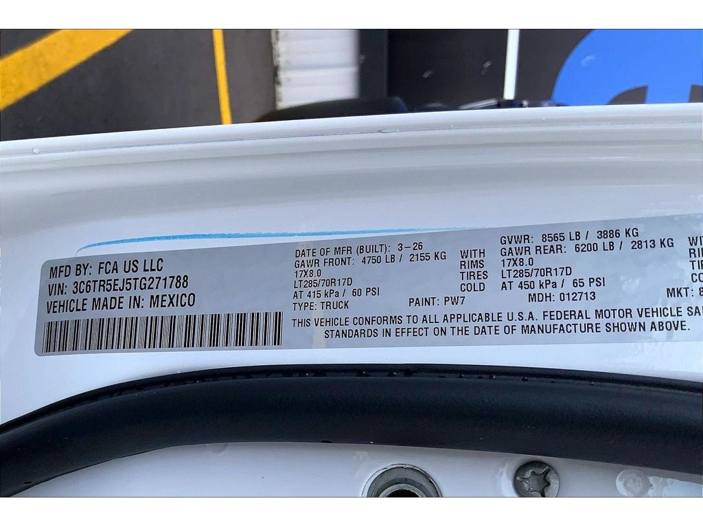 Tow Technology Plus Group: Trailer Reverse Steering Control; Digital 3.0 Rear View Auto Dimming Mirror. Safety Group: Active Lane Management System; Auto High Beam Headlamp Control; Rain Sensitive Windshield Wipers; Drowsy Driver Detection; Traffic Sign Recognition; Adaptive Steering System. Towing Technology Group: Center Stop Lamp with Cargo View Camera; MOPAR Trailer Camera Wiring with No Camera; Surround View Camera System; Trailer Tire Pressure Monitoring System; Trailer Reverse Guidance. Bed Utility Group: MOPAR Spray in Bedliner; MOPAR Deployable Bed Step; LED Bed Lighting. Quick Order Package 2UP Power Wagon: Power Wagon Instrument Panel Spec Plate; RAM Articulink Suspension; 17" X 8.0" Black Painted Aluminum Wheels; 17" Steel Spare Wheel; Instrument Cluster Theme 5 - Power Wagon; Black Wheel Center Hub; Raised Ride Height; LT285/70R17D OWL AT Tires; 8. 565 lbs GVWR; Front Disconnecting Stabilizer Bar; Tru-Lok Front and Rear Axles; Goodyear Brand Tires; 4.10 Axle Ratio. Power Wagon Level 1 Equipment Group: Rain Sensitive Windshield Wipers; Power Adjustable Pedals with Memory; Body Color Door Handles; Auto Power-Folding Mirrors; Overhead LED Lamps; Exterior Mirrors with Heating Element; Auto Dim Exterior Mirror; Mirror Running Lights; Black Exterior Mirrors; Power-Adjustable Convex Aux Mirrors; Premium Overhead Console; Forward and Reverse Utility Lights; 9 Alpine Speakers with Subwoofer; Power Heated Fold Telescopic Mirrors with Memory; Exterior Mirrors with Supplemental Signals; Front Electric Winch; Sport Performance Hood; Exterior Mirrors Courtesy Lamps; Leather Trimmed Bucket Seats; Front Door Locks 2-Door Passive Entry; LED Interior Lighting; Auto High Beam Headlamp Control; LED Dome Lamp with On/off Switch; Universal Garage Door Opener; Exterior Mirrors with Memory; Power Adjust Mirrors; Power Telescoping Mirrors; MOPAR Front and Rear Rubber Floor Mats; Auto Dim Exterior Passenger Mirror; Sun Visors with Illuminated Vanity Mirrors; Auto Adjust in Reverse Exterior Mirrors. RamBox Cargo Management System: Truck Bed Cargo Divider; Vendor Painted Cargo Box; 4 Adjustable Cargo Tie-Down Hooks; LED Bed Lighting; Vendor Painted Cargo Box Tracking. on Board Power System - 2.4KW: Dual Alternators Rated At 400 Amps. Front Electric Winch. MOPAR Black Tubular Side Steps. MOPAR Trailer Camera Wiring with No Camera. Center Stop Lamp with Cargo View Camera. MOPAR Front and Rear Rubber Floor Mats. **Equipment listed is based on original vehicle build and subject to change. Please confirm the accuracy of the included equipment by calling the dealer prior to purchase.**