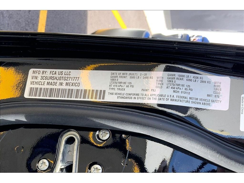 Tradesman Level 1 Equipment Group: Google Android Auto; SiriusXM Radio Service; For Details. Visit DriveUconnect.com; For More Info. Call 800-643-2112; Integrated Voice Command with Bluetooth®; Emergency Vehicle Alert System (EVAS); Manual Folding Exterior Mirrors; 12" Touchscreen Display; Auto Power-Folding Mirrors; 4 Way Front Headrests; Front Armrest with Cupholders; Anti-Spin Differential Rear Axle; Remote USB Port - Charge Only; Manual Adjust 4-Way Front Passenger Seat; Mirror Running Lights; Exterior 115V AC Outlet; Alexa Built-In; Apple CarPlay; Power-Adjustable Convex Aux Mirrors; Forward and Reverse Utility Lights; Cloth 40/20/40 Bench Seat; Disassociated Touchscreen Display; Storage Tray; 115-Volt Auxiliary Front Power Outlet; Rear View Auto Dim Mirror; 40/20/40 Split Bench Seat; Rear Power Sliding Window; Connectivity - US/Canada; Rear Folding Seat; Tinted Acoustic Windshield Glass; GPS Navigation; 4G LTE Wi-Fi Hot Spot; GPS Antenna Input; Exterior Mirrors with Heating Element; MOPAR Black Tubular Side Steps; SiriusXM with 360L; Global Telematics Box Module; Connected Travel and Traffic Services; Black Exterior Mirrors; 2 Way Rear Headrest Seat; Carpet Floor Covering; Off-Road Info Pages; Selectable Tire Fill Alert; Trailer Tow Pages; 400W Inverter; HD Radio; Power Heated Folding Telescope Mirrors; Uconnect 5 Navigation with 12.0" Display Radio; Exterior Mirrors with Supplemental Signals; Exterior Mirrors Courtesy Lamps; Air Conditioning ATC with Dual Zone Control; Manual Adjust 4-Way Driver Seat; Manual Telescoping Mirrors; Power Adjust Mirrors; Power Telescoping Mirrors; Front and Rear Floor Mats; ParkSense Front/rear Park Assist System. Convenience Group. Quick Order Package 2UA Tradesman. Bed Utility Group: MOPAR Spray in Bedliner; MOPAR Deployable Bed Step; LED Bed Lighting. 5th Wheel/gooseneck Towing Prep Group. MOPAR Black Tubular Side Steps. Anti-Spin Differential Rear Axle. Cloth 40/20/40 Bench Seat. LT275/70R18E OWL On/off Road Tires. 18" X 8.0" Black Painted Steel Wheels. 50 Gallon Fuel Tank. Diamond Black Crystal PC. Instrument Panel Mounted Auxiliary Switches. Rear Wheelhouse Liners. Clearance Lamps. 4.10 Axle Ratio. **Equipment listed is based on original vehicle build and subject to change. Please confirm the accuracy of the included equipment by calling the dealer prior to purchase.**