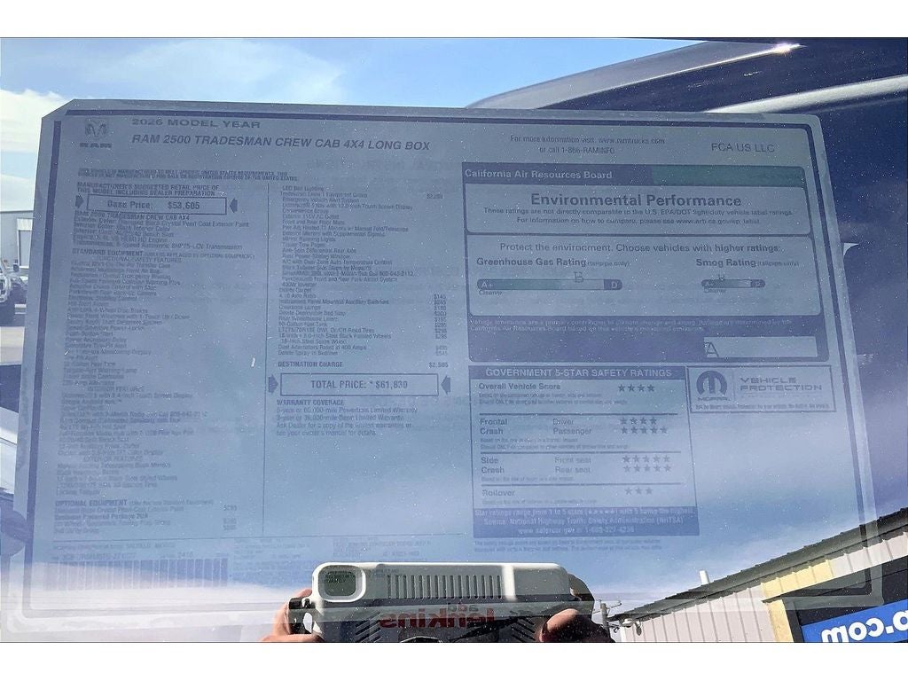 This model has auto-adjust speed for safe following. This model comes equipped with Android Auto for seamless smartphone integration on the road. The installed navigation system will keep you on the right path. See what's behind you with the back up camera on this 3/4 ton pickup. This 2026 Ram 2500 offers Apple CarPlay for seamless connectivity. with XM/Sirus Satellite Radio you are no longer restricted by poor quality local radio stations while driving this Ram 2500. Anywhere on the planet, you will have hundreds of digital stations to choose from. Bluetooth® technology is built into this Ram 2500, keeping your hands on the steering wheel and your focus on the road. The state of the art park assist system will guide you easily into any spot. The Ram 2500 offers Automatic Climate Control for personalized comfort. An off-road package is equipped on this 3/4 ton pickup. It has four wheel drive capabilities.