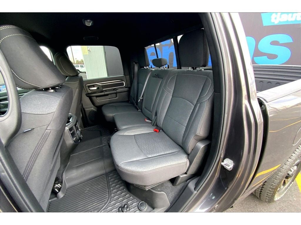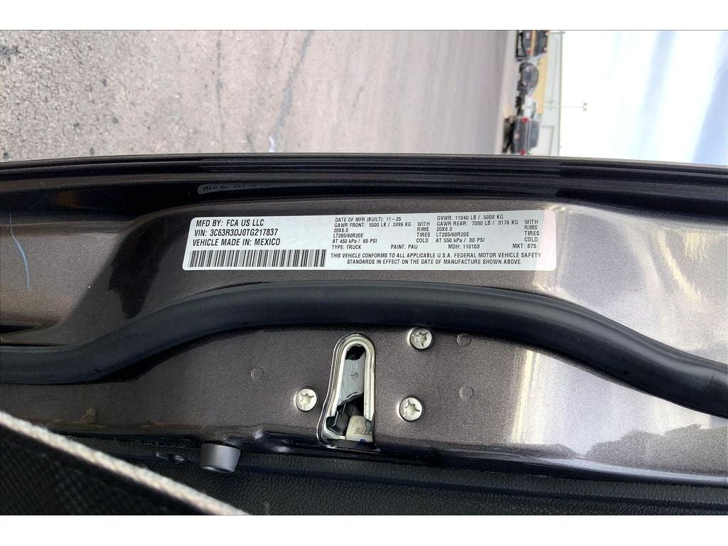 Quick Order Package 2UZ Big Horn. Night Edition: Firestone Brand Tires; Gloss Black Nostrils/molded in Color Black Grille; LT285/60R20E OWL On/off Road Tires; Black Exterior Truck Badging; 20" X 8.0" Black Painted Aluminum Wheels; Body Color Grille Surround; Black Interior Accents; Black Wheel Center Hub; Painted Front Bumper; Painted Rear Bumper. Big Horn Level 2 Plus Equipment Group: Google Android Auto; SiriusXM Radio Service; Surround View Camera System; Blind Spot and Cross Path Detection; For Details Visit DriveUconnect.com; Power Adjustable Pedals; For More Info. Call 800-643-2112; Integrated Voice Command with Bluetooth®; Emergency Vehicle Alert System (EVAS); 12" Touchscreen Display; Glove Box Lamp; Auto Power-Folding Mirrors; Footwell Courtesy Lamp; Drowsy Driver Detection; Heated Front Seats; Mirror Running Lights; MOPAR Deployable Bed Step; Exterior 115V AC Outlet; Alexa Built-In; Apple CarPlay; Premium Cloth Bucket Seats; Power-Adjustable Convex Aux Mirrors; Active Lane Management System; Forward and Reverse Utility Lights; Locking Lower Glove Box; Remote Start System; 9 Alpine Speakers with Subwoofer; Disassociated Touchscreen Display; Dual Wireless Charging Pad; Trailer Tire Pressure Monitoring System; Dual Glove Boxes; 115-Volt Auxiliary Front Power Outlet; Universal Garage Door Opener; 2nd Row in Floor Storage Bins; Sun Visors with Illuminated Vanity Mirrors; Center Stop Lamp with Cargo View Camera; Rain Sensitive Windshield Wipers; Rear View Auto Dim Mirror; Rear Power Sliding Window; Rear Dome with On/off Switch Lamp; LED Bed Lighting; Connectivity - US/Canada; Traffic Sign Recognition; GPS Navigation; 4G LTE Wi-Fi Hot Spot; Adaptive Steering System; GPS Antenna Input; Exterior Mirrors with Heating Element; SiriusXM with 360L; Global Telematics Box Module; Connected Travel and Traffic Services; Heated Steering Wheel; Foam Bottle Insert (door Trim Panel); Black Exterior Mirrors; Dampened Tailgate; Trailer Reverse Guidance; Big Horn Instrument Panel Badge; Off-Road Information Pages; Selectable Tire Fill Alert; Trailer Tow Pages; 400W Inverter; HD Radio; Uconnect 5 Navigation with 12.0" Display Radio; Power Heated Fold Telescopic Mirrors; Exterior Mirrors with Supplemental Signals; Steering Wheel Mounted Audio Controls; Exterior Mirrors Courtesy Lamps; Air Conditioning ATC with Dual Zone Control; MOPAR Spray in Bedliner; Auto High Beam Headlamp Control; Cluster 7.0" TFT Color Display; Power Adjust Mirrors; Luxury Steering Wheel; Power Telescoping Mirrors. Blind Spot and Cross Path Detection. 5th Wheel/gooseneck Towing Prep Group. Premium Cloth Bucket Seats. Remote Start System. Granite Crystal Met CC. Instrument Panel Mounted Auxiliary Switches. MOPAR Front and Rear Rubber Floor Mats. Rear Wheelhouse Liners. Power 2-Way Driver Lumbar Adjust. **Equipment listed is based on original vehicle build and subject to change. Please confirm the accuracy of the included equipment by calling the dealer prior to purchase.**