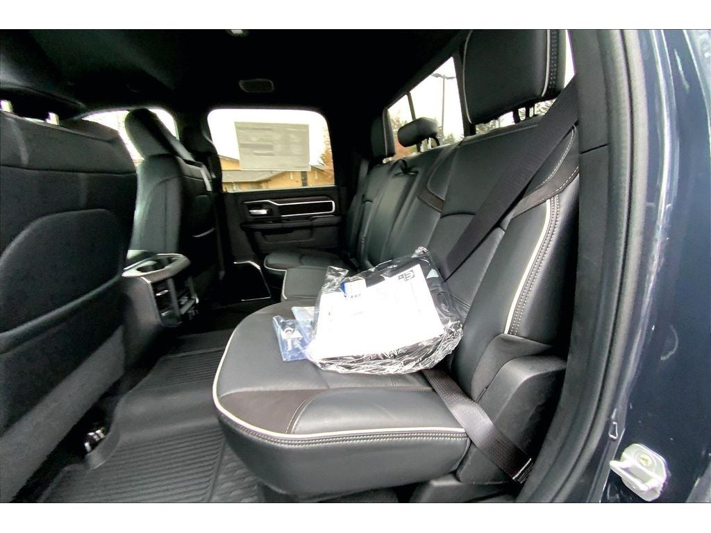Cold Weather Group: Engine Block Heater; MOPAR Winter Front Grille Cover. Quick Order Package 24H Laramie. Towing Technology Group: Center Stop Lamp with Cargo View Camera; Surround View Camera System; Trailer Tire Pressure Monitoring System; Trailer Reverse Guidance. Laramie Level 1 Plus Equipment Group: Center Stop Lamp with Cargo View Camera; Rain Sensitive Windshield Wipers; Power Adjustable Pedals with Memory; LED Bed Lighting; Traffic Sign Recognition; Auto Power-Folding Mirrors; Adaptive Steering System; Exterior Mirrors with Heating Element; Auto Dimming Exterior Mirrors; Drowsy Driver Detection; Mirror Running Lights; MOPAR Deployable Bed Step; Foam Bottle Insert (door Trim Panel); Power-Adjustable Convex Aux Mirrors; Active Lane Management System; Forward and Reverse Utility Lights; Leather Trimmed Bucket Seats; Power Heat Fold Memory Telescopic Mirrors; Exterior Mirrors with Supplemental Signals; Exterior Mirrors Courtesy Lamps; MOPAR Spray in Bedliner; Remote Tailgate Release; Auto High Beam Headlamp Control; Chrome Exterior Mirrors; Exterior Mirrors with Memory; Power Adjust Mirrors; 2nd Row in Floor Storage Bins; Power Telescoping Mirrors; Auto Dimming Exterior Passenger Mirror; Auto Adjust in Reverse Exterior Mirrors. Chrome Bumper Package: Bright Rear Bumper; Bright Front Bumper. Auto Level Rear Air Suspension. Chrome Flat Wheel-To-wheel Side Steps. 5th Wheel/gooseneck Towing Prep Group. Leather Trimmed Bucket Seats. Center Stop Lamp with Cargo View Camera. MyFlexCare Service Diesel. Forged Blue Metallic. MOPAR Front and Rear Rubber Floor Mats. Clearance Lamps. Transfer Case Skid Plate Shield. **Equipment listed is based on original vehicle build and subject to change. Please confirm the accuracy of the included equipment by calling the dealer prior to purchase.**