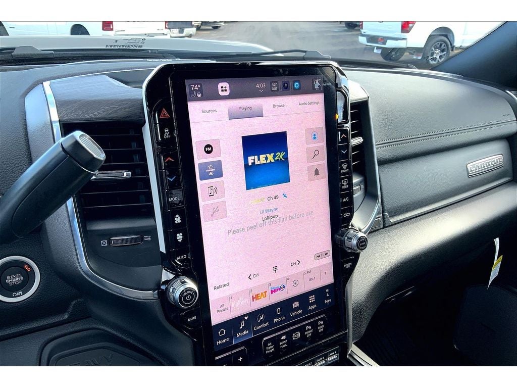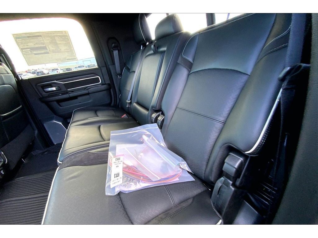 Quick Order Package 24H Laramie. Night Edition: Firestone Brand Tires; LT285/60R20E OWL On/off Road Tires; Black Exterior Truck Badging; 20" X 8" Black Painted Aluminum Wheels; Gloss Black Grille Billets/accents; Body Color Grille Surround; Sport Performance Hood; Black Wheel Center Hub. Laramie Level 2 Plus Equipment Group: Google Android Auto; SiriusXM Radio Service; Power Adjustable Pedals with Memory; For Details Visit DriveUconnect.com; For More Info. Call 800-643-2112; Integrated Voice Command with Bluetooth®; Emergency Vehicle Alert System (EVAS); Power Deployable Running Boards; Auto Power-Folding Mirrors; Drowsy Driver Detection; Mirror Running Lights; MOPAR Deployable Bed Step; Alexa Built-In; Apple CarPlay; Power-Adjustable Convex Aux Mirrors; Active Lane Management System; Forward and Reverse Utility Lights; Disassociated Touchscreen Display; Remote Tailgate Release; 17 Speaker Harman/kardon Premium Sound; Center Stop Lamp with Cargo View Camera; Rain Sensitive Windshield Wipers; LED Bed Lighting; Connectivity - US/Canada; Traffic Sign Recognition; GPS Navigation; 4G LTE Wi-Fi Hot Spot; Adaptive Steering System; GPS Antenna Input; Exterior Mirrors with Heating Element; Auto Dim Exterior Mirror; SiriusXM with 360L; Global Telematics Box Module; Connected Travel and Traffic Services; Foam Bottle Insert (door Trim Panel); Black Exterior Mirrors; Off-Road Information Pages; Selectable Tire Fill Alert; Trailer Tow Pages; Leather Trimmed Bucket Seats; HD Radio; 14.4" Touchscreen Display; Power Heated Folding Telescopic Mirrors with Memory; Exterior Mirrors with Supplemental Signals; Exterior Mirrors Courtesy Lamps; Uconnect 5 Nav with 14.4" Display; MOPAR Spray in Bedliner; Auto High Beam Headlamp Control; Exterior Mirrors with Memory; Power Adjust Mirrors; Power Telescoping Mirrors; Auto Dim Exterior Passenger Mirror; Auto Adjust in Reverse Exterior Mirrors. Auto Level Rear Air Suspension. Power Sunroof. Power Deployable Running Boards. 5th Wheel/gooseneck Towing Prep Group. Leather Trimmed Bucket Seats. Center Stop Lamp with Cargo View Camera. Instrument Panel Mounted Auxiliary Switches. MOPAR Front and Rear Rubber Floor Mats. Clearance Lamps. **Equipment listed is based on original vehicle build and subject to change. Please confirm the accuracy of the included equipment by calling the dealer prior to purchase.**