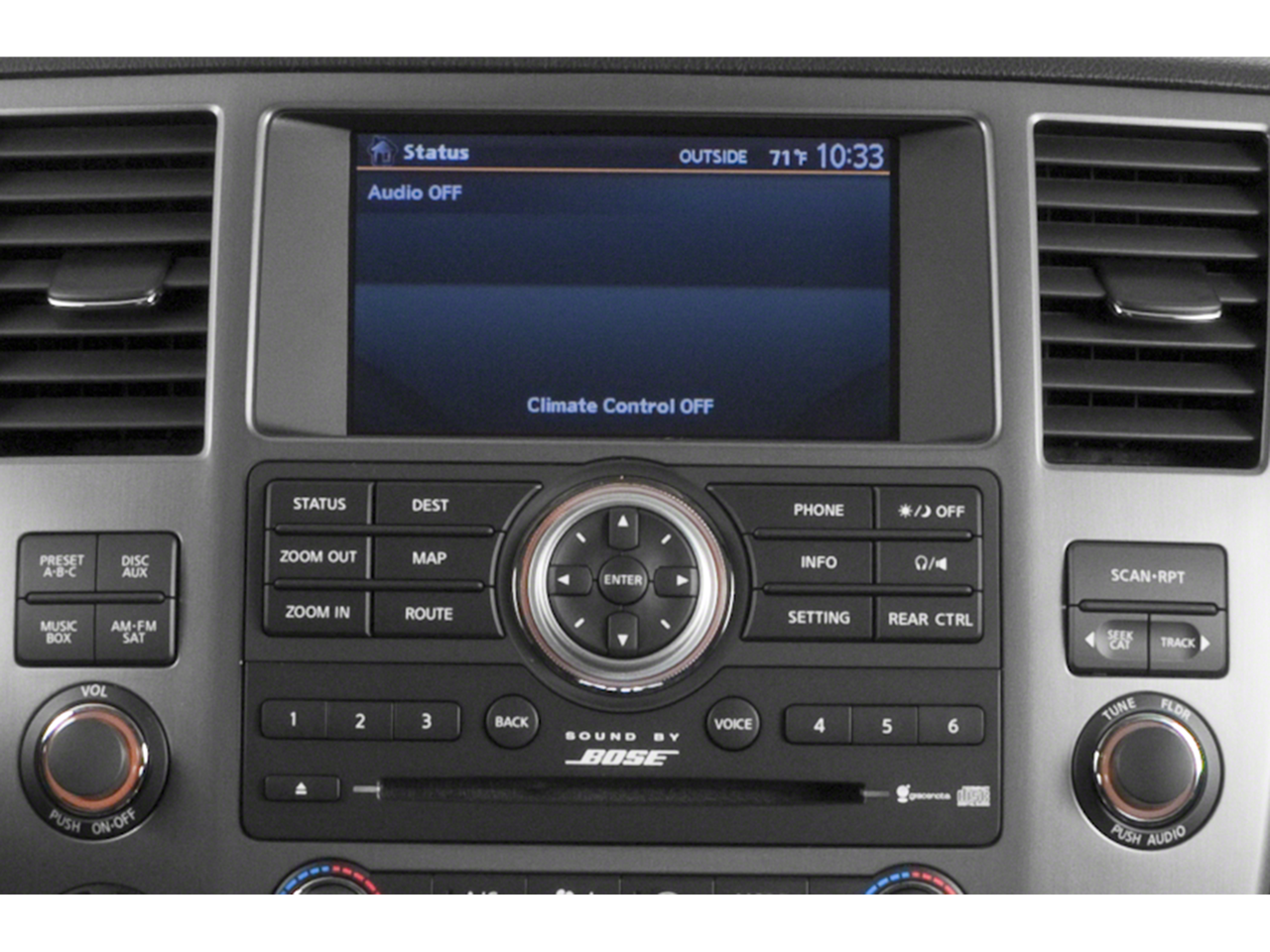 - Radio: HDD Navigation w/Voice Recognition -inc: 11 speakers plus subwoofer, 7" VGA display screen w/in-dash single-disc DVD, 2 wireless headphones, 1 remote control, SiriusXM satellite radio, auxiliary input jack, 2 USB ports, 2 VTR jacks, illuminated steering wheel mounted controls, Bluetooth hands-free phone system, streaming audio via Bluetooth, NavTraffic and NavWeather capabilities and Zagat Survey restaurant guide