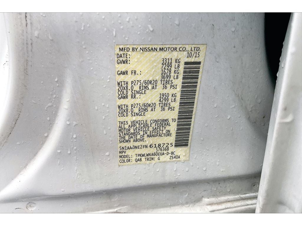2015 Nissan Armada Platinum 4WD — Rigby, ID. Powerful V8 performance meets premium comfort in this well-equipped full-size SUV, featuring a 5.6L gasoline engine and four-wheel drive for confident towing and capability on Idaho roads. This Nissan Armada Platinum delivers robust acceleration and a smooth ride while providing spacious seating for family and gear. Interior highlights include genuine leather seats and a premium BOSE stereo system for immersive audio on every drive. Stay connected and hands-free with Bluetooth® phone and audio streaming, while automatic climate control maintains consistent comfort for all passengers. Rear parking sensors simplify maneuvering and add confidence in tight spaces, making daily driving and trailhead runs easier. This 2015 Nissan Armada Platinum has been carefully maintained and inspected to ensure reliability and value. With its combination of V8 power, 4WD traction, and upscale features, it's ideal for drivers who need towing capability, passenger comfort, and modern conveniences. Located in Rigby, ID, this vehicle is competitively priced and ready for immediate delivery — we offer the best price on this Nissan Armada Platinum in the area. Contact us to schedule a test drive, request a vehicle history report, or learn more about financing options. Experience the power, comfort, and value of this Nissan Armada today.