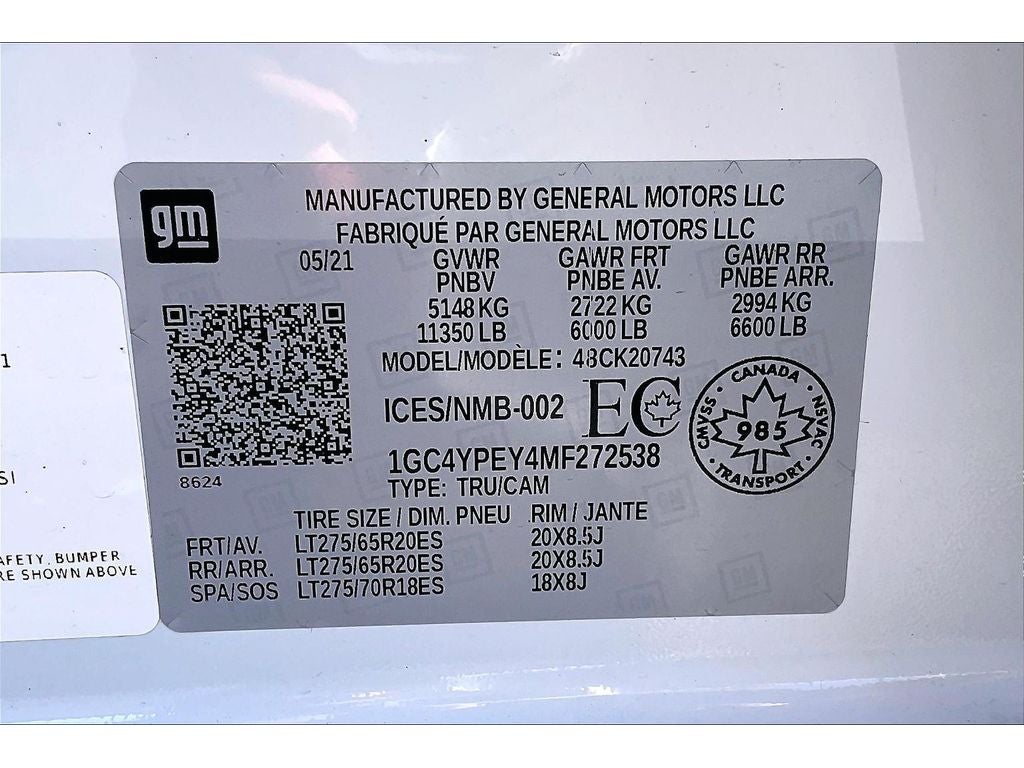 LTZ Convenience Package II: HD Surround Vision with 2 Trailer View Camera Provisions; Wireless Charging; Bed View Camera with Two Trailer Camera Provisions; Chevrolet Infotainment 3 Premium System Radio. LTZ Convenience Package: LED Cargo Area Lighting; Ventilated Driver and Front Passenger Seats; Heated 2nd Row Outboard Seats; Power Up/down Tailgate Function with Power Lock and Release; Power Sliding Rear Window with Defogger; Floor-Mounted Centre Console; Front Bucket Seats with Centre Console; 2 USB Ports and 1 SD Card Reader; Universal Home Remote. Z71 Off-Road Package: Hill Descent Control; Off-Road Suspension; Skid Plates. LTZ Premium Package: LT275/65R20 AT BW Tires; 20" 6-Spoke Polished Aluminum Wheels. Safety Package: Ultrasonic Front and Rear Park Assist; Rear Cross Traffic Alert; Lane Change Alert with Side Blind Zone Alert. Safety Package II: Forward Collision Alert; Following Distance Indicator; Automatic Emergency Braking; Safety Alert Seat; IntelliBeam Automatic High Beam On/off; Lane Departure Warning. Technology Package: 8" Diagonal Multicolour Digital Display DIC; 15" Diagonal Multicolour Head-Up Display; Rear Camera Mirror. Preferred Equipment Group 1LZ: Driver Memory; P