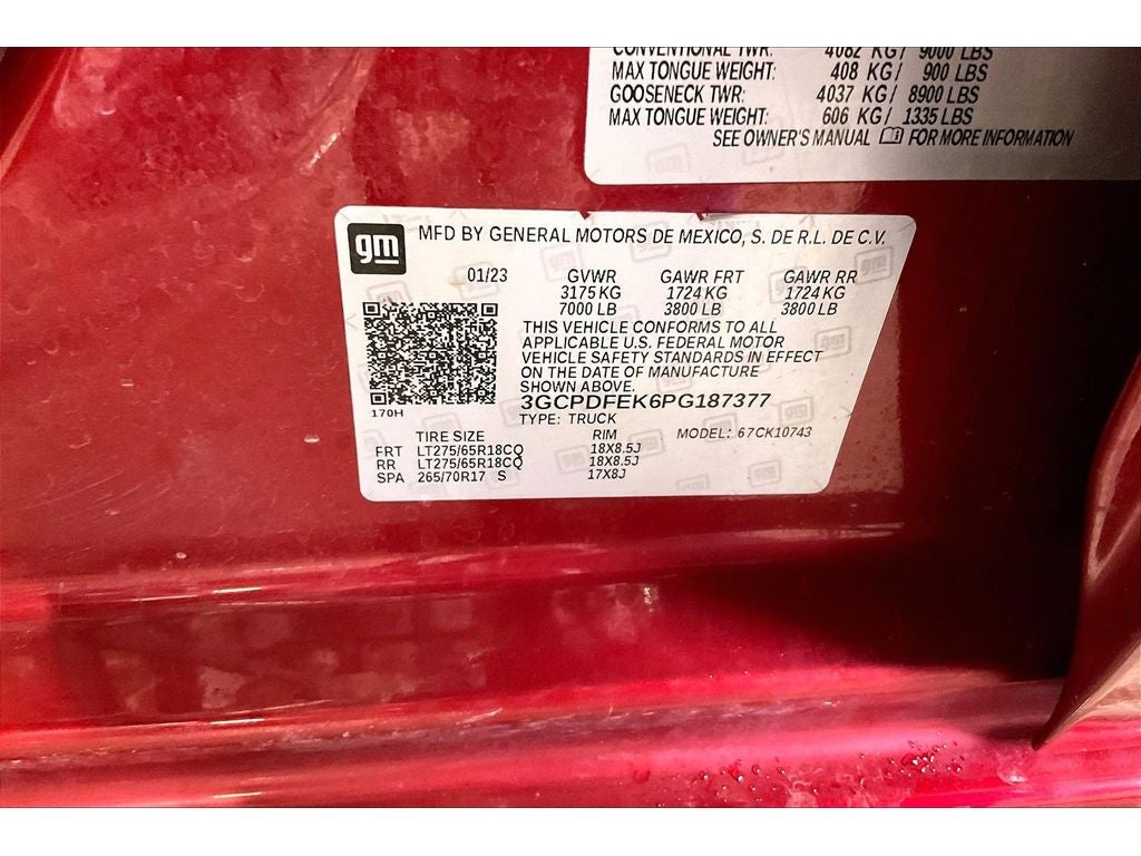 Preferred Equipment Group 2LT: HD Rear Vision Camera; LED Cargo Area Lighting; Rear 60/40 Folding Bench Seat (folds Up); Cloth Seat Trim; SiriusXM with 360L; Bluetooth® For Phone; LT275/65R18C MT BW Tires; Compass; Electrical Steering Column Lock; Trailering Package; Wireless Phone Projection; Standard Tailgate; Front LED Fog Lamps; 40/20/40 Front Split-Bench Seat; Suspension Package; Steering Wheel Audio Controls; Color-Keyed Carpeting Floor Covering; OnStar and Chevrolet Connected Services Capable; Power Front Windows with Passenger Express Down; Inside Rearview Mirror with Tilt; 2-Speed Transfer Case; Deep-Tinted Glass; 12.3" Multicolor Reconfigurable Digital Display; 6-Speaker Audio System; All-Weather Floor Liner; High Gloss Black Mirror Caps; Electronic Cruise Control; Power Rear Windows with Express Down; Chevy Safety Assist; Performance Red Recovery Hooks; Power Front Windows with Driver Express Up/down; EZ Lift Power Lock and Release Tailgate; Convenience Package; 2.7L Turbo High-Output Engine; 18" X 8.5" Black Painted Aluminu