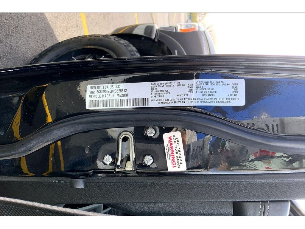 Cold Weather Group: Engine Block Heater; MOPAR Winter Front Grille Cover. Quick Order Package 2HM Limited. Limited Level 1 Equipment Group: Google Android Auto; SiriusXM Radio Service; Center Stop Lamp with Cargo View Camera; Surround View Camera System; Vendor Painted Cargo Box; For Details. Visit DriveUconnect.com; For More Info. Call 800-643-2112; Integrated Voice Command with Bluetooth®; LED Bed Lighting; Connectivity - US/Canada; Power Deployable Running Boards; 12" Touchscreen Display; GPS Navigation; 4G LTE Wi-Fi Hot Spot; RamBox Cargo Management System; Adaptive Steering System; GPS Antenna Input; SiriusXM with 360L; Global Telematics Box Module; Connected Travel and Traffic Services; Alexa Built-In; Trailer Reverse Guidance; Vendor Painted Cargo Box Tracking; Apple CarPlay; Off-Road Information Pages; Selectable Tire Fill Alert; Trailer Tow Pages; Disassociated Touchscreen Display; HD Radio; Ramcharger Wireless Charging Pad; Uconnect 5 Navigation with 12.0" Display Radio; 4 Adjustable Cargo Tie-Down Hooks; Full Speed Forward Collision Warning Plus; MOPAR Spray in Bedliner; 17 Speaker Harman/kardon Premium Sound; Truck Bed Cargo Divider; Adaptive Cruise Control with Stop; Digital Rearview Mirror; Lane Keep Assist. Auto Level Rear Air Suspension. Power Sunroof. 5th Wheel/gooseneck Towing Prep Group. Anti-Spin Differential Rear Axle. Center Stop Lamp with Cargo View Camera. Adaptive Steering System. Diamond Black Crystal PC. Instrument Panel Mounted Auxiliary Switches. **Equipment listed is based on original vehicle build and subject to change. Please confirm the accuracy of the included equipment by calling the dealer prior to purchase.**