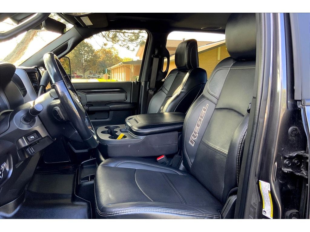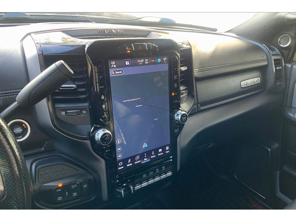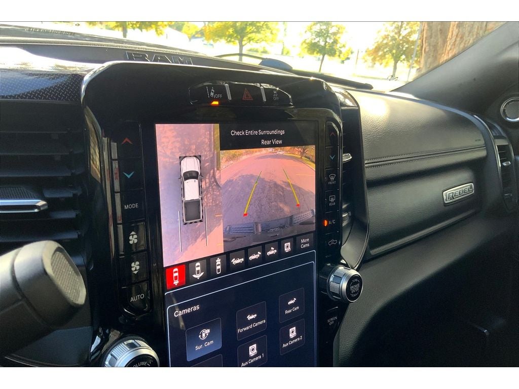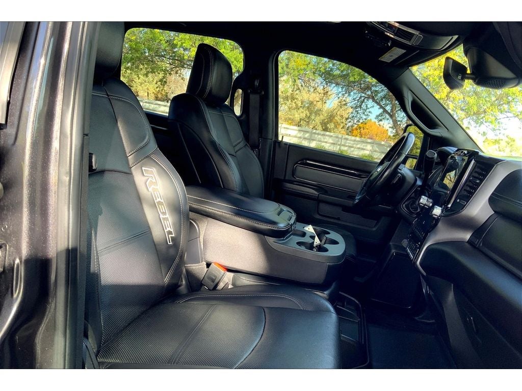 Safety Group: Auto High Beam Headlamp Control; Blind Spot and Cross Path Detection; Rain Sensitive Windshield Wipers; Adaptive Cruise Control with Stop; Adaptive Steering System; Full Speed Forward Collision Warning Plus; Lane Keep Assist. Towing Technology Group: Center Stop Lamp with Cargo View Camera; Surround View Camera System; Blind Spot and Cross Path Detection; Trailer Reverse Guidance. Bed Utility Group: MOPAR Spray in Bedliner; MOPAR Deployable Bed Step; LED Bed Lighting. Quick Order Package 2HR Rebel: 40/20/40 Split Bench Seat; Conventional Differential Front Axle; Rear 60/40 Folding Seat; Electric Shift-On-the-fly Transfer Case; 4 Way Front Headrests; Front Armrest with Cupholders; Heated Front Seats; Heated Steering Wheel; Painted Semi-Texture Film Instrument Panel Bezels; Limited Slip Rear Differential with Electronic Lock; 2 Way Rear Headrest Seat; Storage Tray; High Back Seats; 4x4 Badge; 220 Amp Alternator; Black Wheel Center Hub; Front Center Seat Cushion Storage; Power Adjust 8-Way Driver Seat; Folding Flat Load Floor Storage; 18" Steel Spare Wheel; Power 2-Way Driver Lumbar Adjust. Level 1 Equipment Group: Google Android Auto; SiriusXM Radio Service; Power Adjustable Pedals with Memory; For Details. Visit DriveUconnect.com; For More Info. Call 800-643-2112; Integrated Voice Command with Bluetooth®; 12" Touchscreen Display; Auto Power-Folding Mirrors; Mirror Running Lights; Alexa Built-In; Security Alarm; Apple CarPlay; Power Adjustable Convex Aux Mirrors; Premium Overhead Console; Forward and Reverse Utility Lights; Disassociated Touchscreen Display; LED Interior Lighting; LED Dome Lamp with On/off Switch; Leather Trimmed 40/20/40 Bench Seat; Rear Window Defroster; Rain Sensitive Windshield Wipers; Rear Power Sliding Window; Connectivity - US/Canada; Body Color Door Handles; GPS Navigation; 4G LTE Wi-Fi Hot Spot; GPS Antenna Input; Overhead LED Lamps; Exterior Mirrors with Heating Element; Auto Dim Exterior Mirror; SiriusXM with 360L; Global Telematics Box Module; Connected Travel and Traffic Services; Black Exterior Mirrors; Off-Road Information Pages; Selectable Tire Fill Alert; Trailer Tow Pages; HD Radio; Uconnect 5 Navigation with 12.0" Display Radio; Power Heated Fold Telescopic Mirrors with Memory; Exterior Mirrors with Supplemental Signals; Exterior Mirrors Courtesy Lamps; Remote Proximity Keyless Entry; Auto High Beam Headlamp Control; Exterior Mirrors with Memory; Power Adjust Mirrors; Front Door Accent Lighting; Power Telescoping Mirrors; Auto Dim Exterior Passenger Mirror; Rear Door Accent Lighting; Auto Adjust in Reverse Exterior Mirrors. Power Sunroof. RamBox Cargo Management System. 20" X 8.0" Black Diamond Cut Aluminum Wheels. Power Deployable Running Boards. 17 Speaker Harman/kardon Premium Sound. MOPAR Spray in Bedliner. Blind Spot and Cross Path Detection. Center Stop Lamp with Cargo View Camera. Adaptive Steering System. Granite Crystal Met CC. Granite Crystal Met CC. Security Alarm. Instrument Panel Mounted Auxiliary Switches. **Equipment listed is based on original vehicle build and subject to change. Please confirm the accuracy of the included equipment by calling the dealer prior to purchase.**