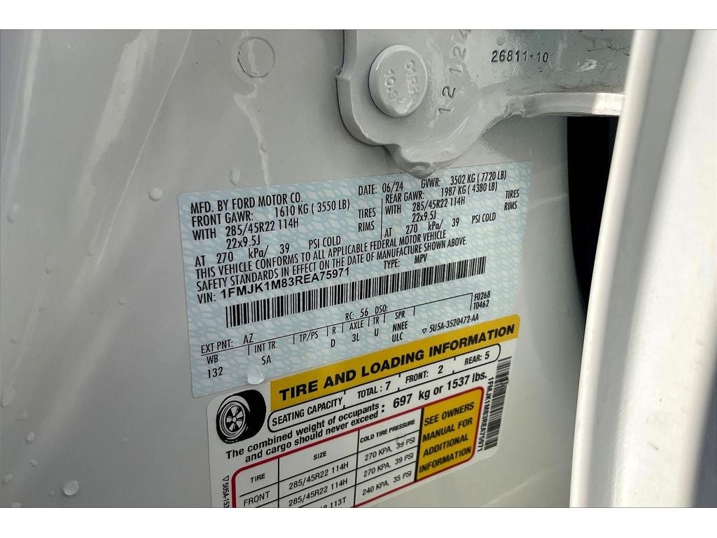 Equipment Group 600A Standard Package: 10-Speed Automatic Transmission with SelectShift; 3.5L EcoBoost V6 Engine; P285/45R22 AS BSW Tires; 7. 550 lbs GVWR; B&O Unleashed Sound System by Bang & Olufsen Radio. Ford BlueCruise 1.0. Dual-Headrest Rear-Seat Entertainment System. 22" 6-Spoke Polished Aluminum Wheels. Heavy-Duty Trailer Tow Package. Star White Metallic TC. **Equipment listed is based on original vehicle build and subject to change. Please confirm the accuracy of the included equipment by calling the dealer prior to purchase.**