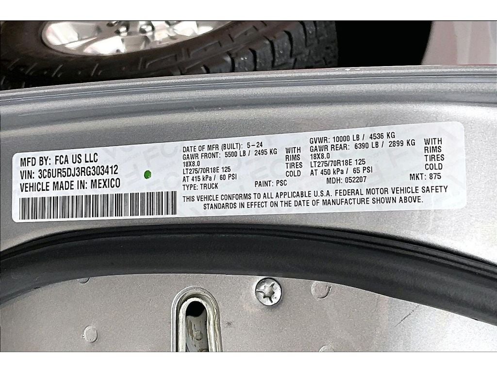 - Rear Tire Size: LT275/70SR18